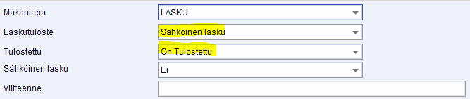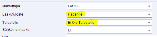 - Laskutuloste: Sähköinen lasku -> Paperille