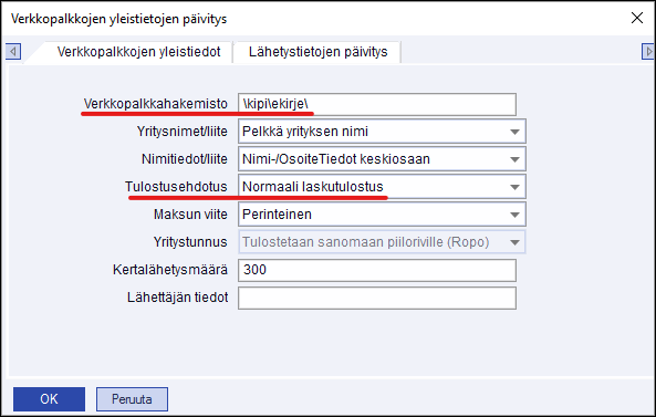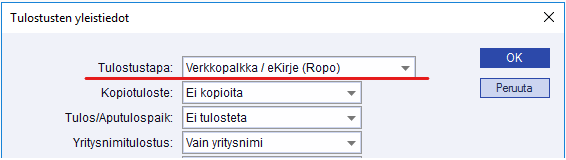 - Tulostustapaan: Verkkopalkka / eKirje (Ropo)