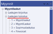 - Myyntilaskut / Laskujen tulostus / AlkuPeräiset Tulostamattomat / Sähköiset laskut