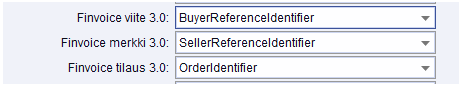 Tällä välilehdellä määritetään missä sanoman kentissä viite, merkki ja tilauksenne kentän tiedot kulkevat Finvoice 3.0 sanomalla.