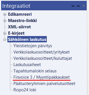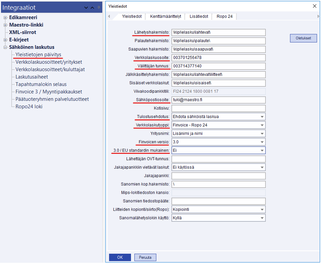 - Integraatiot-välilehti / Sähköinen laskutus / Yleistietojen päivitys / Tulostusehdotus