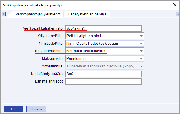 Tulostustapaan: Verkkopalkka / eKirje (Ropo)