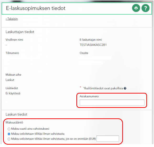 Kuluttajan E-lasku- ja suoramaksu-sopimuksen tekeminen