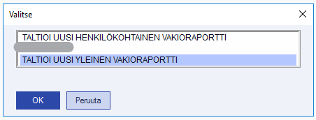 Henkilökohtainen vakioraportti näkyy vain omalle käyttäjätunnukselle, ja sen voi myös itse myöhemmin poistaa painamalla raportin kohdalla F3. Yleinen vakioraportti näkyy kaikille, ja sen pystyy poistamaan vain se käyttäjä joka sen on alunperin luonut.