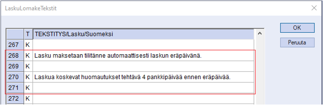 - Laskulomaketekstit