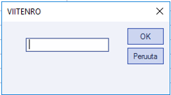 Kirjaa VIITENRO ikkunaan alkuperäisen tapahtuman numero muodossa esim. 122/123 >