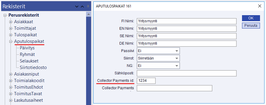 Rekisterit / Perusrekisterit / Aputulospaikat / Päivitys / Collector Payments id: