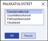 Verkkopalkkojen lähetys merkitsee palkkalaskelman tulostetuksi verkkopalkkojen lähetyksen jälkeen. Mikäli palkkalaskelmat on tarve tulostaa tarkasteltavaksi ennen kuin niistä muodostetaan aineisto Ropolle toimitettavaksi, tulee laskelmat tulostaa Palkat > Tulostukset > Uusintatulostukset -valinnalla. Tuolloin laskelmien tila ei muutu tulostetuksi. Kun viralliset palkansaajille toimitettavat laskelmat tulostetaan aina käyttäen Tulostamattomat -valintaa, ei samasta laskelmasta tule muodostettua aineistoa useampaan kertaan Ropolle toimitettavaksi.