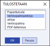 - Valitse tulostetaanko ’Verkkopalkka/eKirje’’ tai ’Verkkopalkka’