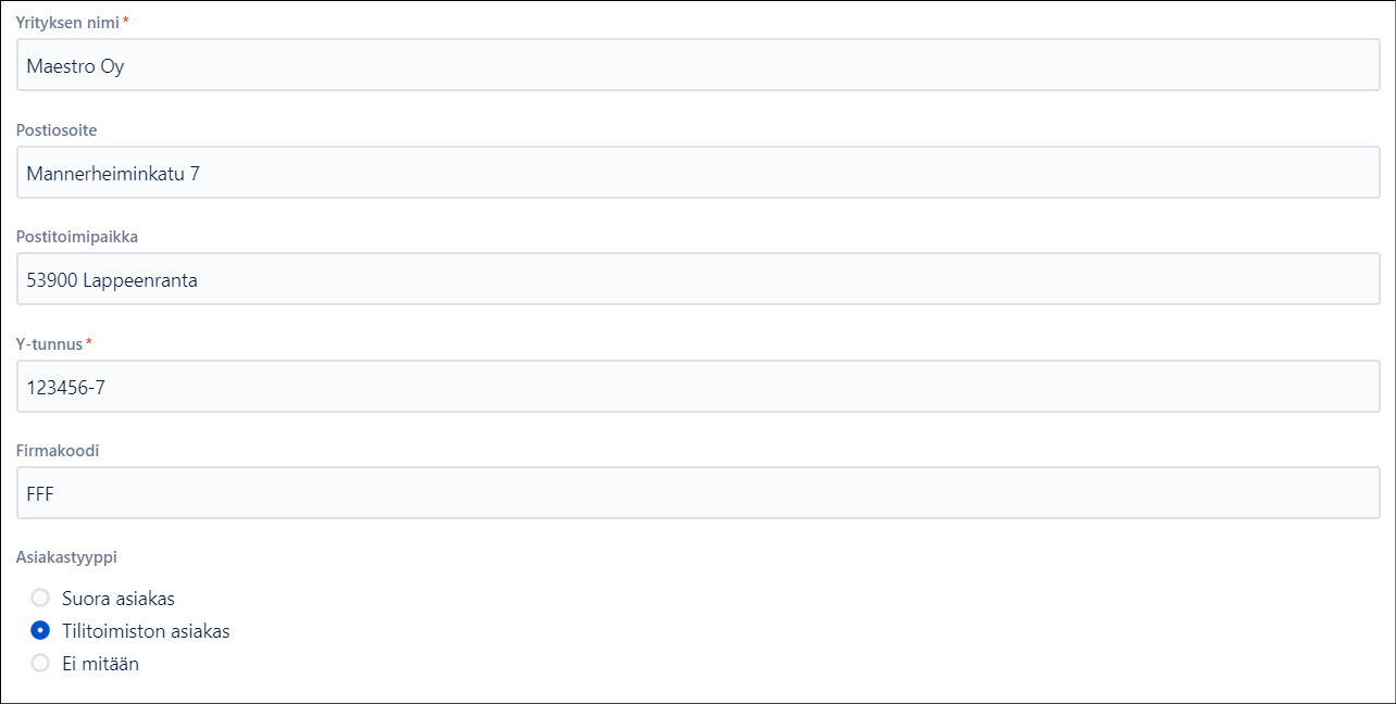 Huom! Voit tilata tällä lomakkeella myös useammalla yritykselle palvelut käyttöön. Liitä silloin tilauksen liitteisiin Maestrolta saatu verkkolaskujen massatilaukseen tarkoitettu täydennetty Excel-tiedosto. Lisäksi voit tilata samalla lomakkeella myös verkkopalkat käyttöön.