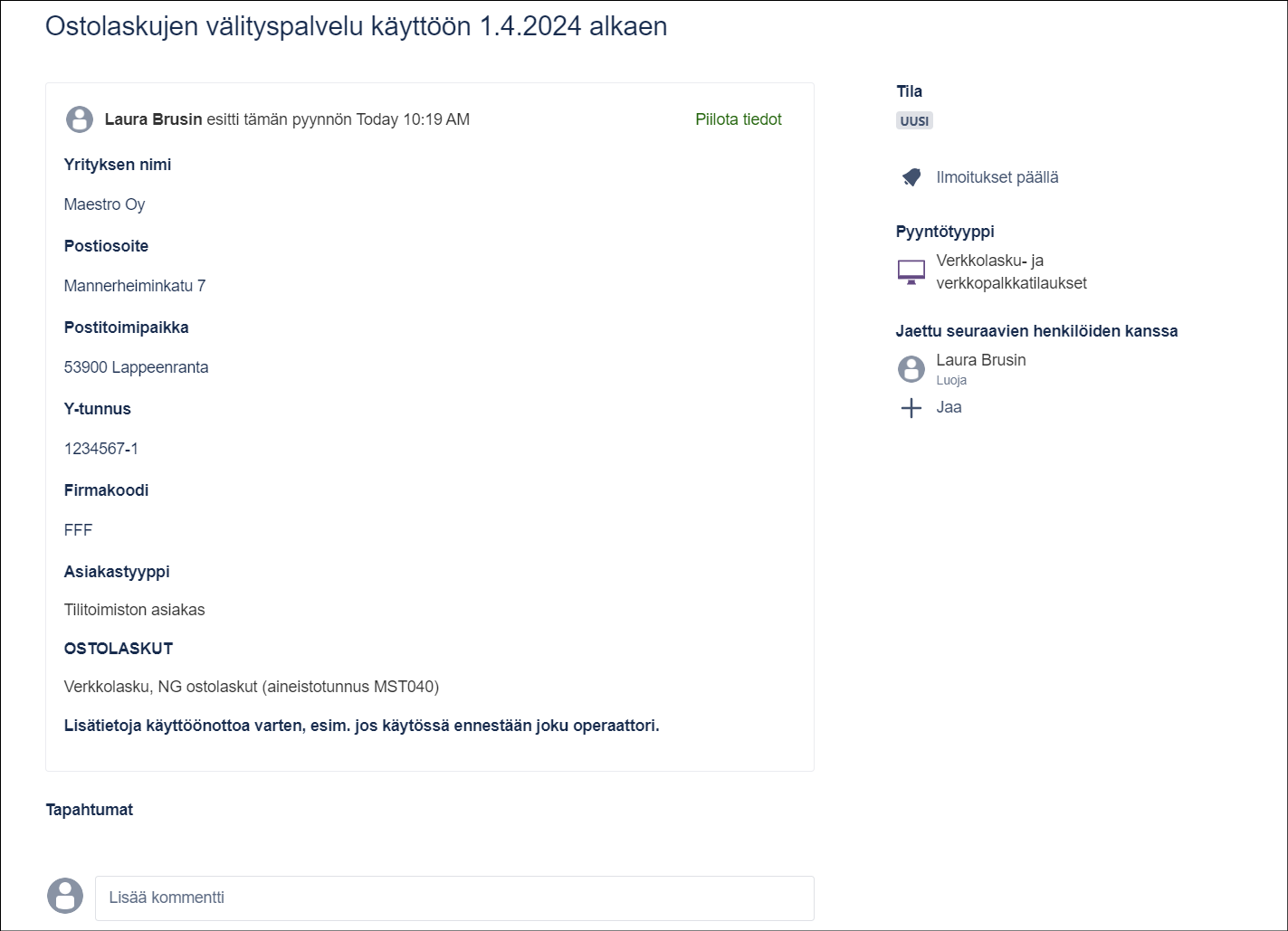 Verkkolaskupalvelun (ostolaskut) tilaus tilitoimiston asiakkaalle
