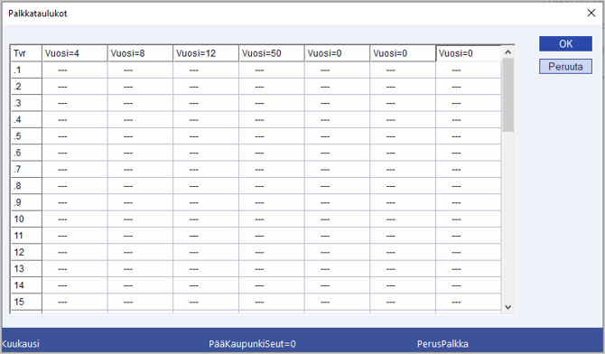 - Palkkataulukko