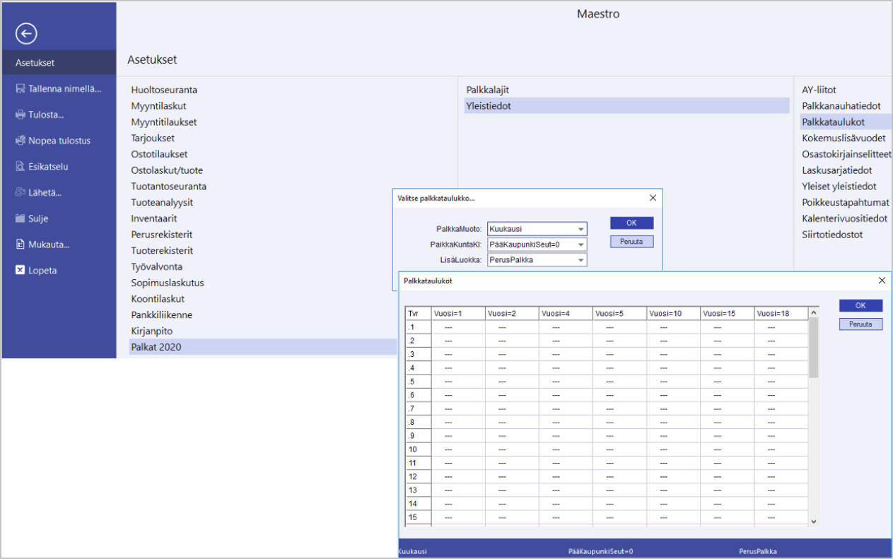 - Palkkataulukot