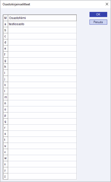 - Osastokirjainselitteet