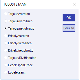 - Tarjouksen tulostus