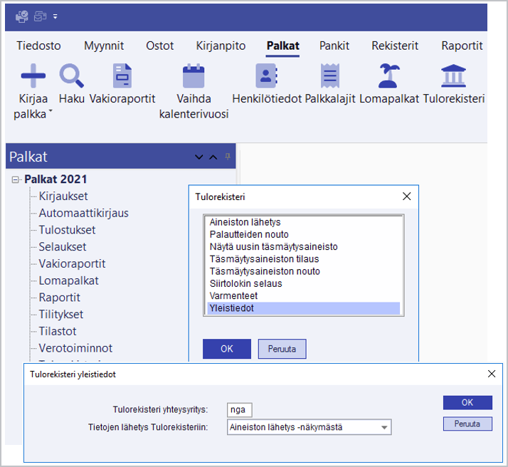 Valitse Palkat/Tulorekisteri/Yleistiedot.