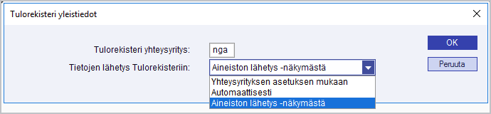 Tietojen lähetys Tulorekisteriin -valinnalla voidaan vaikuttaa siihen, milloin tiedot lähetetään Maestrosta Tulorekisteriin.