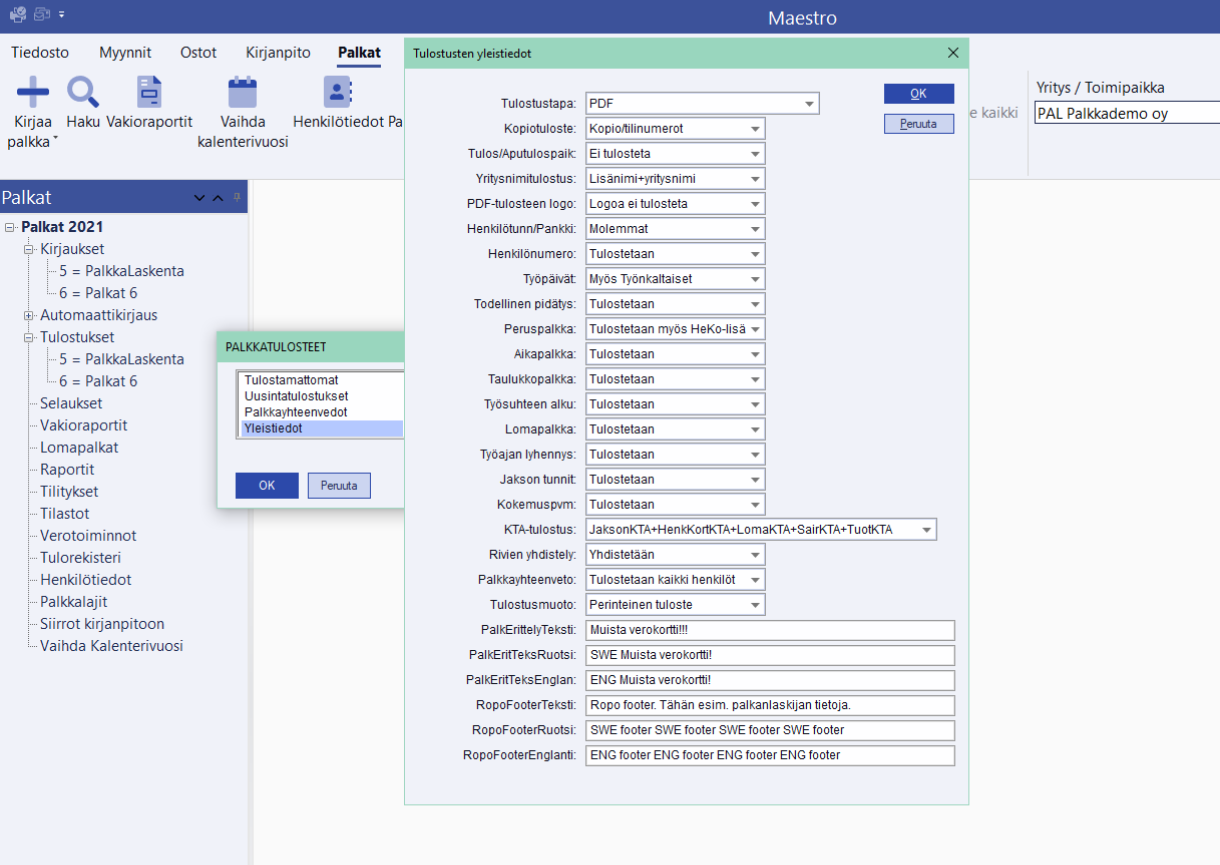 - Palkkatulosteiden yleistiedot