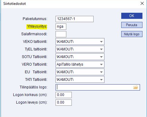 Kun olet vastaanottanut varmenteen siirtotunnukset, kirjaudu Maestroon ja ota yhteysyritys esille. Syötä tieto yhteysyrityksestä siirtotiedostoihin joko valinnalla Tiedosto/Palkat/Yleistiedot/Siirtotiedostot tai Kirjanpito/Perustulosteet/OmaVerotiedostot/Siirtotiedostot. Yhteysyritys on se yritys, jolle varmenne haetaan ja jonka kautta Tulorekisteri-ilmoitukset tehdään. Tilitoimistoissa siis tilitoimistoyritys itse, konserneissa esimerkiksi konsernin emoyhtiö. Määritys tehdään ainoastaan kerran ja ainoastaan yhteysyrityksen ympäristössä, tieto päivittyy sen jälkeen automaattisesti kaikkiin samassa Maestro-ympäristössä oleviin yrityksiin.