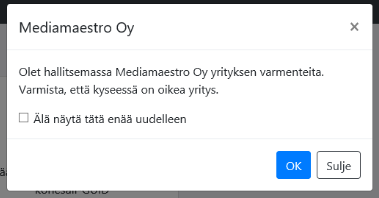 Kun olet varmistunut, että hallinnoit oikean yrityksen varmenteita, klikkaa OK. Tämän jälkeen pääset varsinaiseen varmennenäkymään.