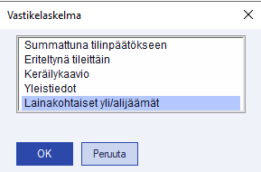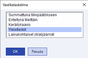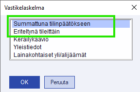 4. Tulosta vastikelaskelma joko summattuna tilinpäätökseen tai eriteltynä tileittäin. - Yleistiedot
