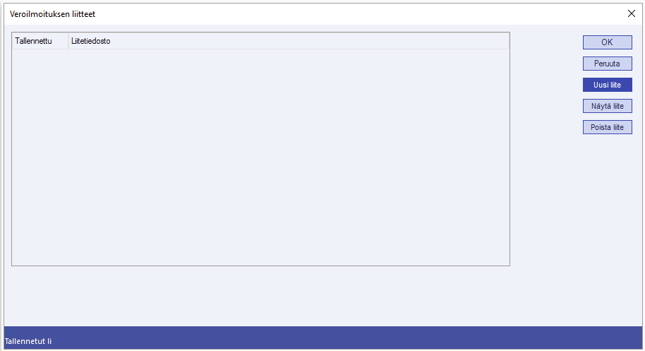 Liitteet tallentuvat liitehakemistoon, mistä ne poimitaan mukaan kun verolomakkeet lähetetään Verohallintoon.