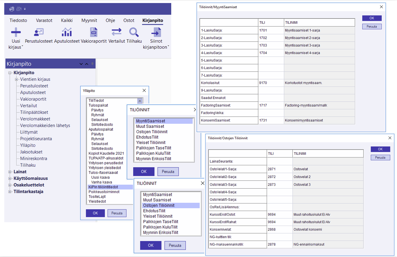 Kirjanpito on integroitu Myyntilaskutukseen ja Ostoreskontraan. Käytännössä tämä tarkoittaa sitä, että vienti reskontratilille kirjanpidossa päivittää reskontrat automaattisesti, kunhan alla olevia ohjeita noudatetaan.