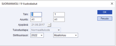 - jos tulostat kaikkiin kohteisiin, määritä asuntorajaukseksi A0-Z9999.