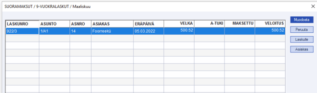 - Maestro vuokralaskutus