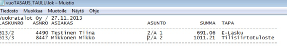 - vuokralaskujen tulostus
