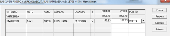 Laskujen poistaminen