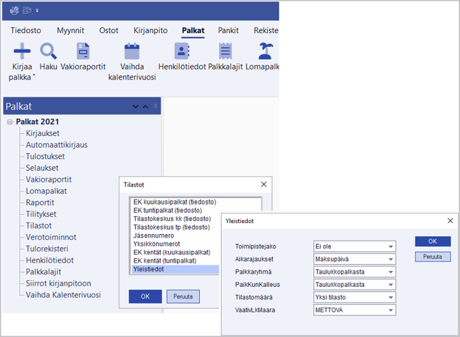 Valitse Palkat/Tilastot/Yleistiedot.